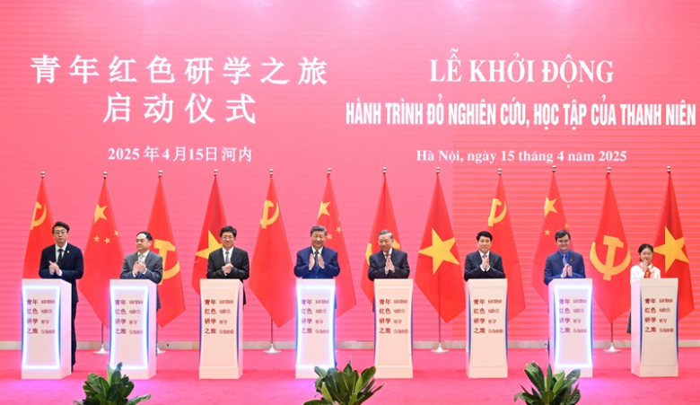 活动后,习近平和苏林、梁强共同启动“红色研学之旅”项目。习近平同苏林、范明政共同见证中越铁路合作机制启动仪式。