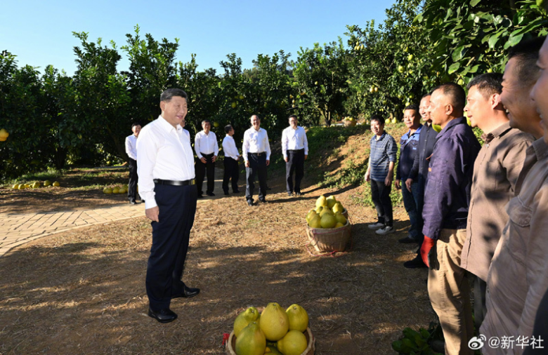 7日下午,习近平总书记在广东省梅州市梅县区雁洋镇先后参观叶剑英纪念园、考察南福金柚种植基地,了解当地弘扬革命文化、加大对革命老区支持力度、推进乡村全面振兴等情况。(文字记者:朱基钗、林晖;摄影记者:谢环驰、燕雁、申宏、丁海涛、肖翊)