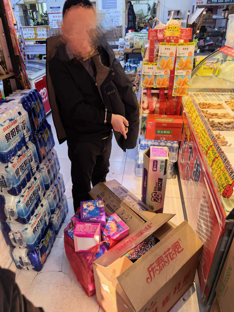 案例三:近期,浑南公安分局在浑南区某超市内抓获嫌疑人王某某,超市现场收缴大量烟花爆竹。经查,王某某从辽阳某烟花爆竹公司购得涉案物品,计划通过微信群、朋友圈等线上渠道售卖并线下配送。目前,王某某被依法行政拘留,烟花爆竹予以没收。